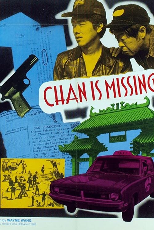 In Chan is Missing, a 1982 film set in Chinatown, San Francisco, two taxi drivers Jo and Steve were searching all over town for their disappeared business partner Chan. Wayne Wong’s first feature film reflects on the Chinese American identity. They speak to many people who have seen Chan. Everybody has a different impression on him. He was said to be a recent immigrant yet to learn the American way; an honest and trustworthy father to his daughter; a failure to his wife. He is an eccentric who likes Mariachi. Yet he is also considered just too Chinese. The Chinese Americans, after several generations in this country, remain an outside group with an incoherent image in this movie.