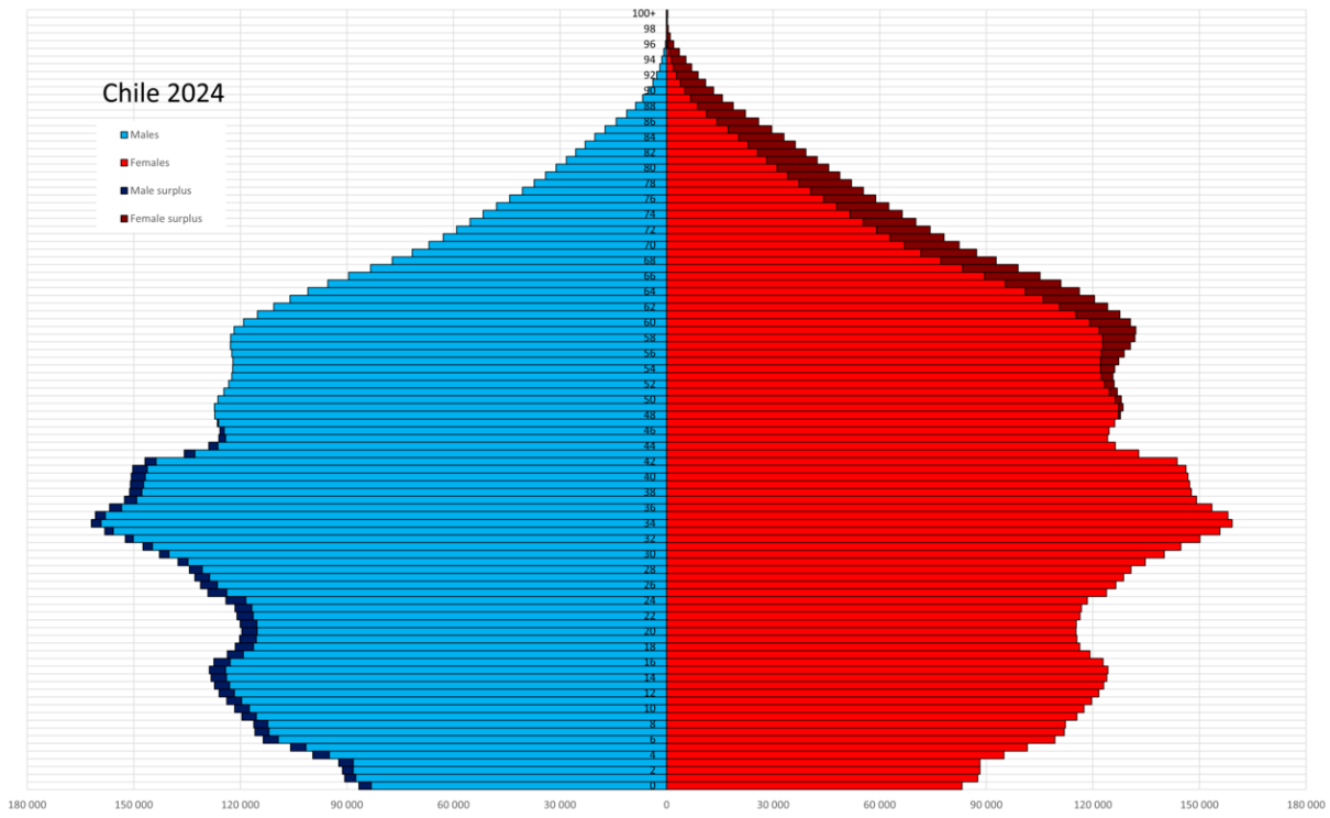 What will the country become in the next 30 years? The fertility decline seems irreversible. Immigration, even if it is politically desirable at current level, can only slow the decline but not completely solve it. Chilean society of the future will be quite different from what they have grown up in.
