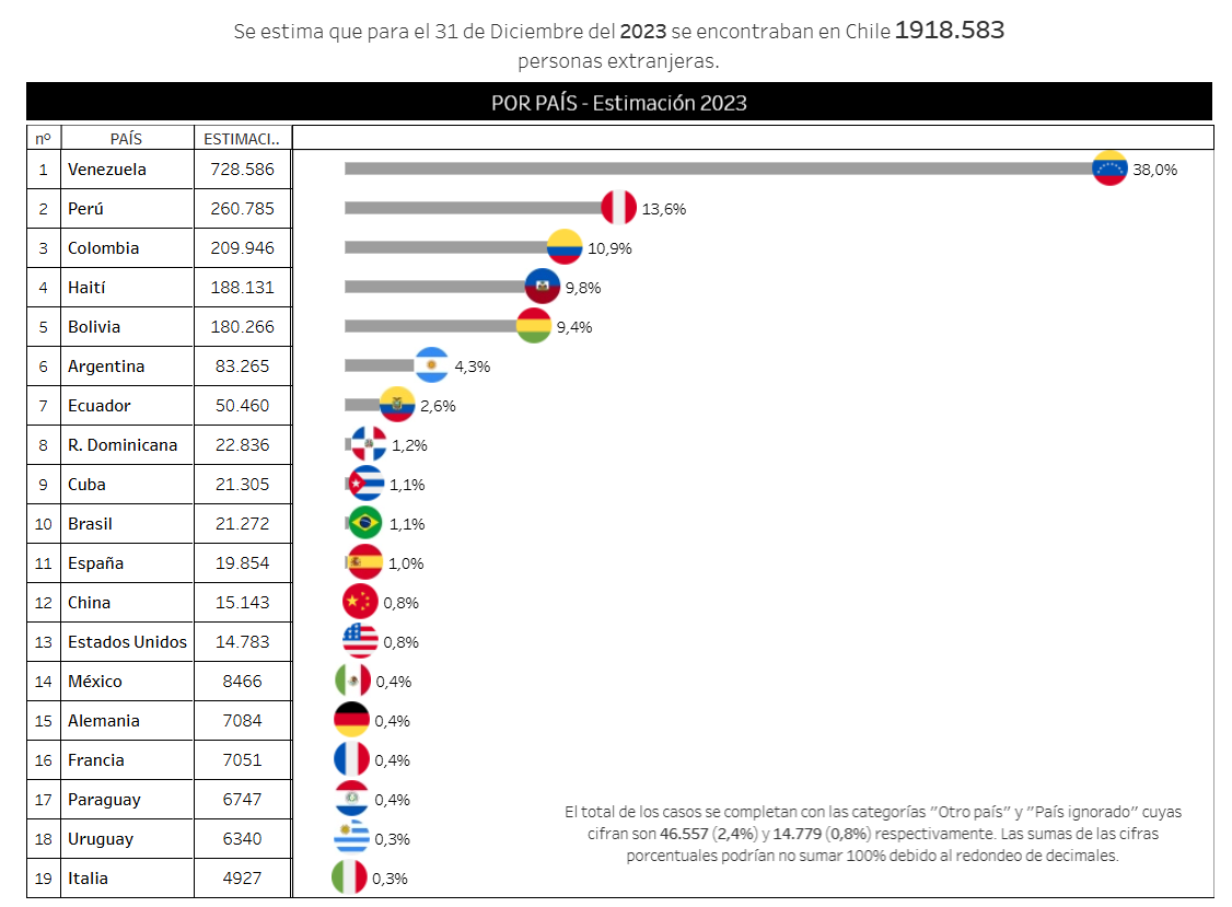 Today, there are 1.9 million foreign born living in Chile. This is about 10% of the population (compared to the US’s 16%). This is a 40% jump from just five years ago. Venezuelans are by far the largest group and the fastest growing group.