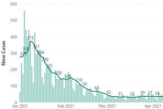 The COVID trend, in SF, California, and the US as a whole, is clearly heading down.
